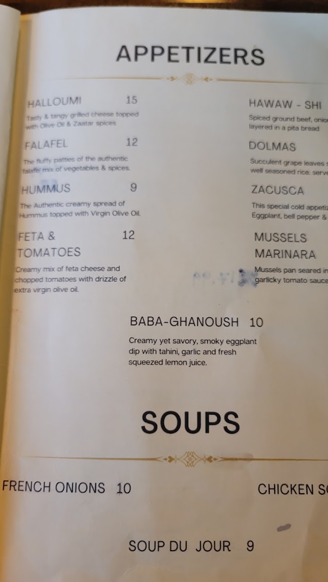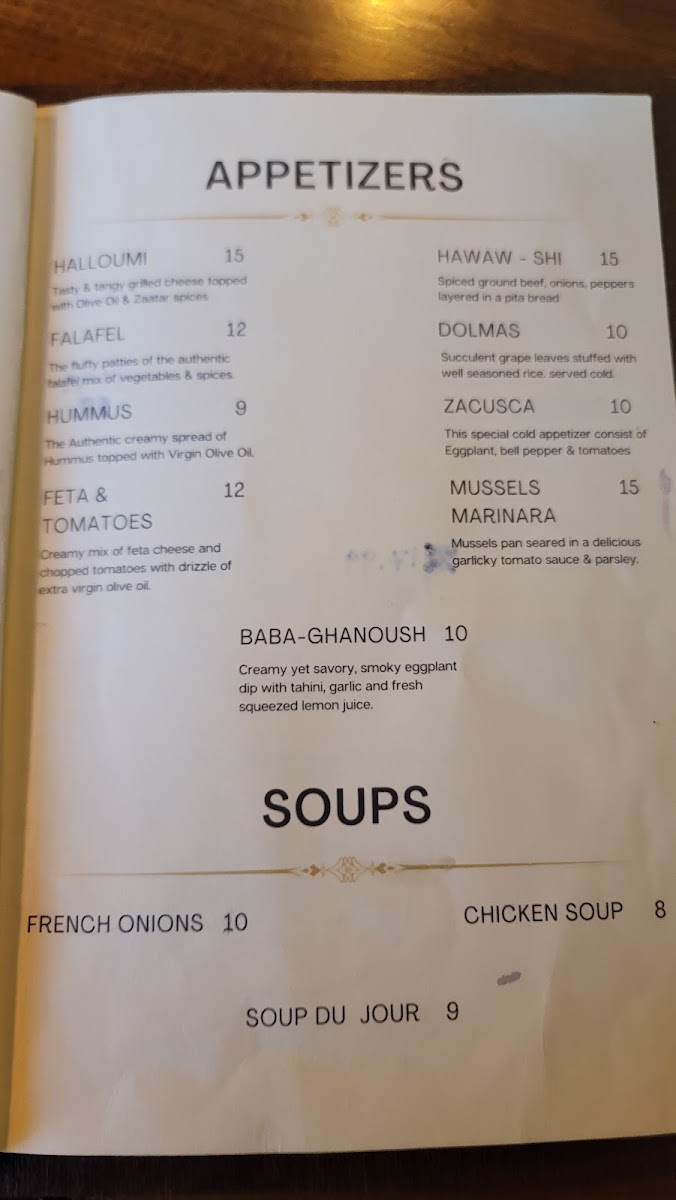 Well seasoned thinly sliced beef with tahini sauce, and red onion.