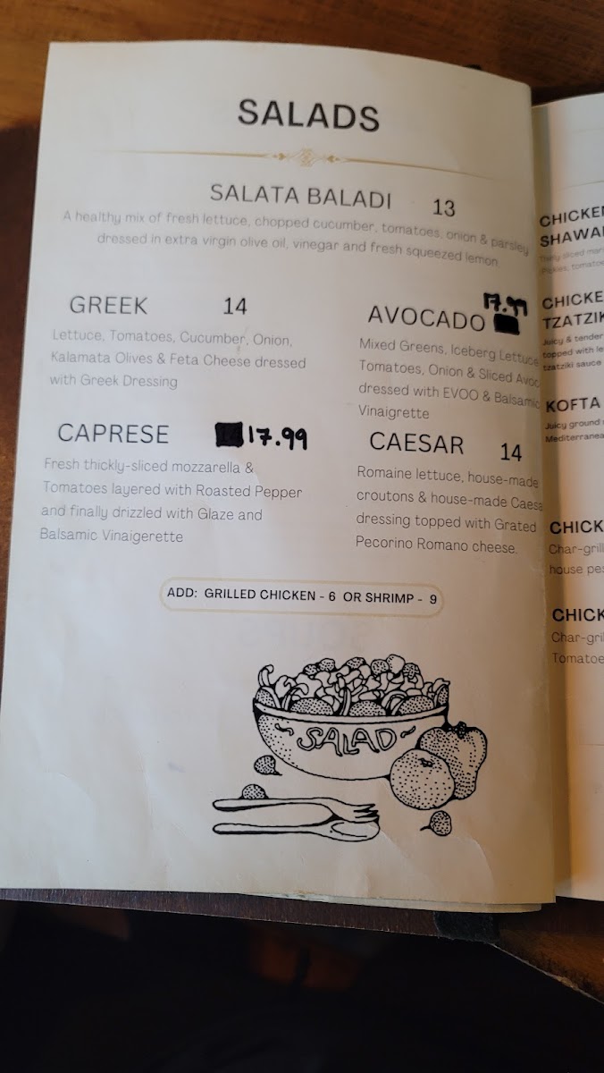 Thinly sliced marinated chicken topped with tahini sauce, tomatoes, and red onion.